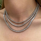 Go bold with our 4mm stone Tennis necklace. This statement piece will undoubtedly compliment any outfit. Available in 2 lengths so you can stack and style, this piece is unisex and versatile.