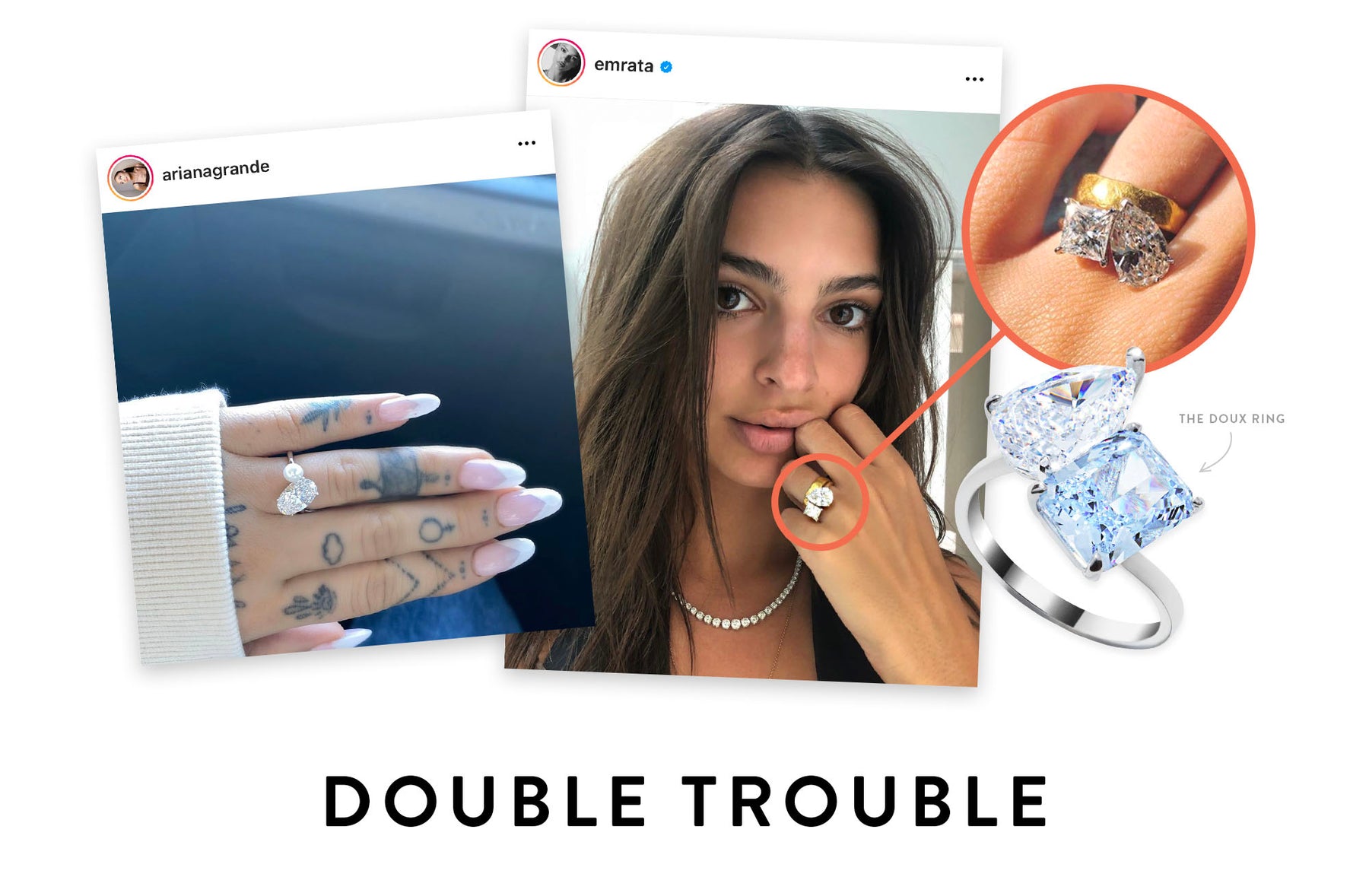 Can’t decide which stone cut you prefer?… choose both! Ariana Grande and Emily Ratajkowski have the right idea. Their gorgeous double stone rings grab your attention with this new, daring style. We’ve created an album of double stone rings to suit you indecisive queens! No stacking needed…I think it’s safe to say this ring can ride solo.