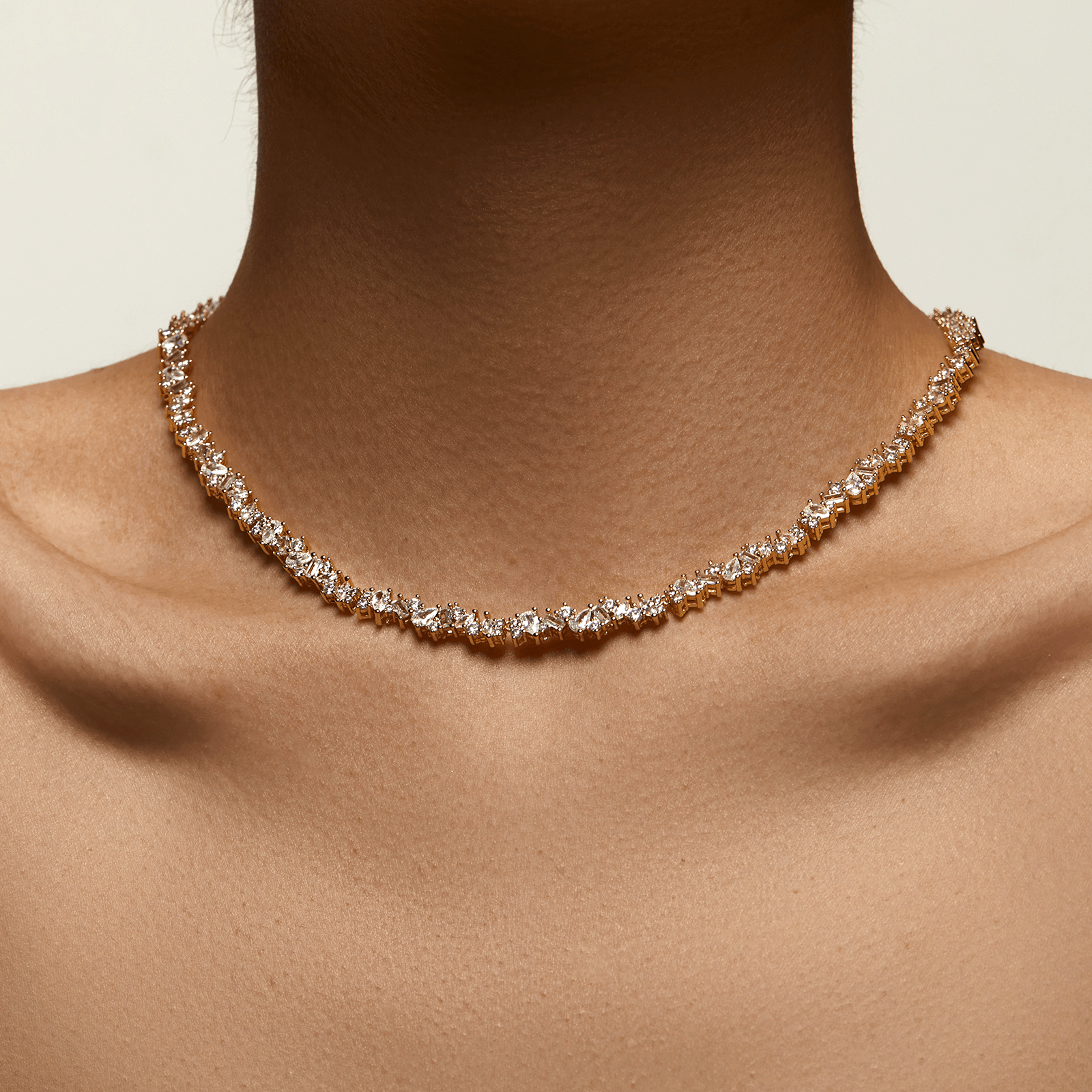 Step into a world where elegance meets boldness with our Aurea Necklace. This extraordinary piece showcases a captivating fusion of shapes, creating a mesmerising multi-shape tennis necklace that is truly one-of-a-kind. With its unique and edgy design, this necklace effortlessly stands out from the crowd, making a powerful statement wherever you go.